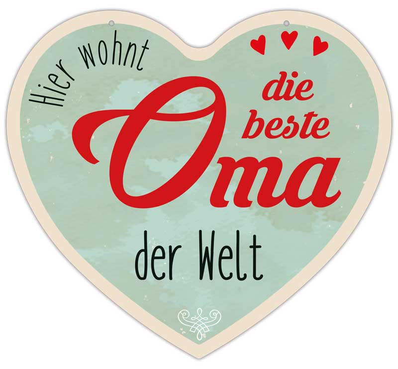 Weiterführende Links zu "Herz-Blechschild Hier wohnt die beste Oma der Welt"