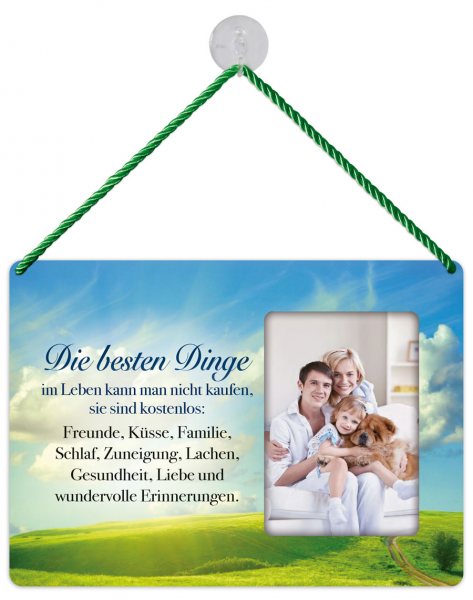 Durch die Lieferung mit Kordel und einem Saugnapf kann der Rahmen aufgehängt oder an Scheiben angebracht werden.